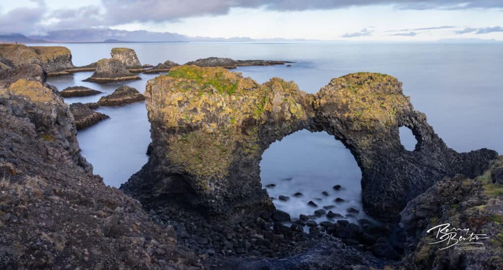 Arnarstapi – Here you can find a couple of restaurants but also the dramatic cliffs including caves beaten into the rock by the waves and an arch that offers great photography opportunities. A rock sculpture of Bárðar, overlooks and protects the area. A half giant, half human, he was said to have settled this area.