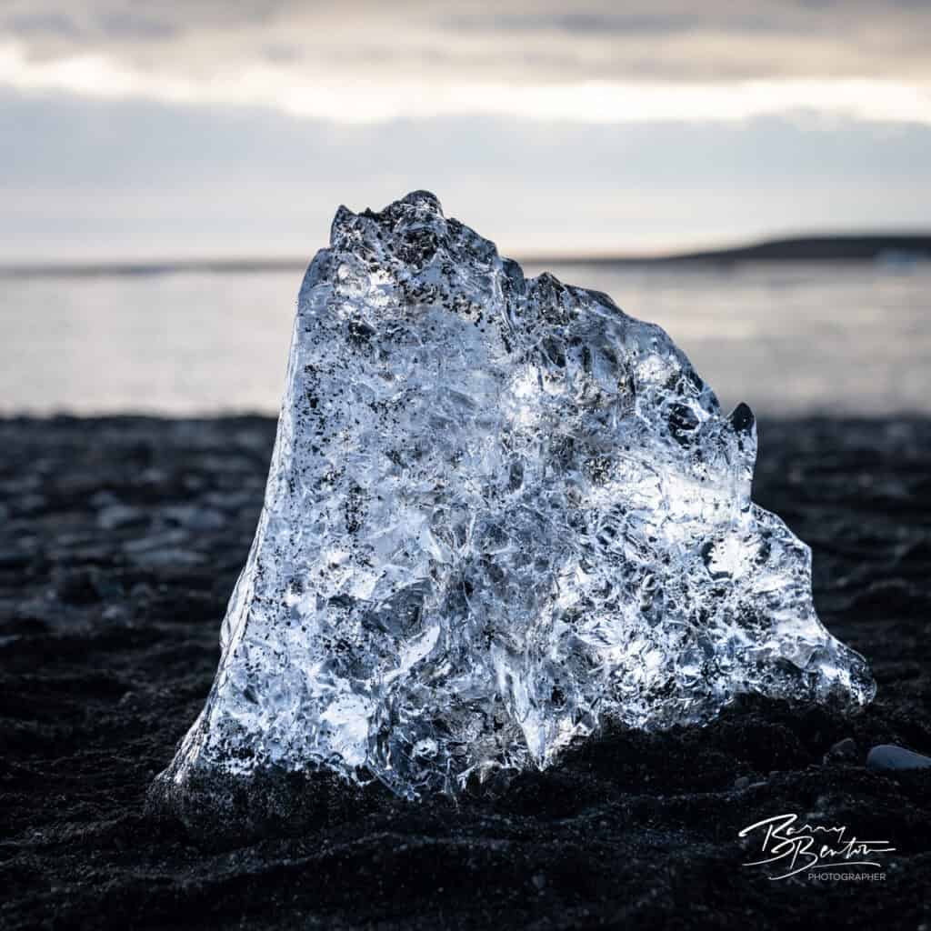 You know how sometimes, things don’t live up to your expectations? This stop was our only dud. We specifically drove further east to visit the tourist destination named, Diamond Beach. This is a beach not far from the Jokulsarlon lagoon where small pieces of ice wash ashore and seem to gleam like diamonds on the beach. You can image a photographer’s joy at the sight. Sadly, we were very underwhelmed by not dozens but three small “diamonds.” Two of which were small enough to pick up. So not as diamond studded as we hoped. It likely varies based on the weather and maybe the time of day.