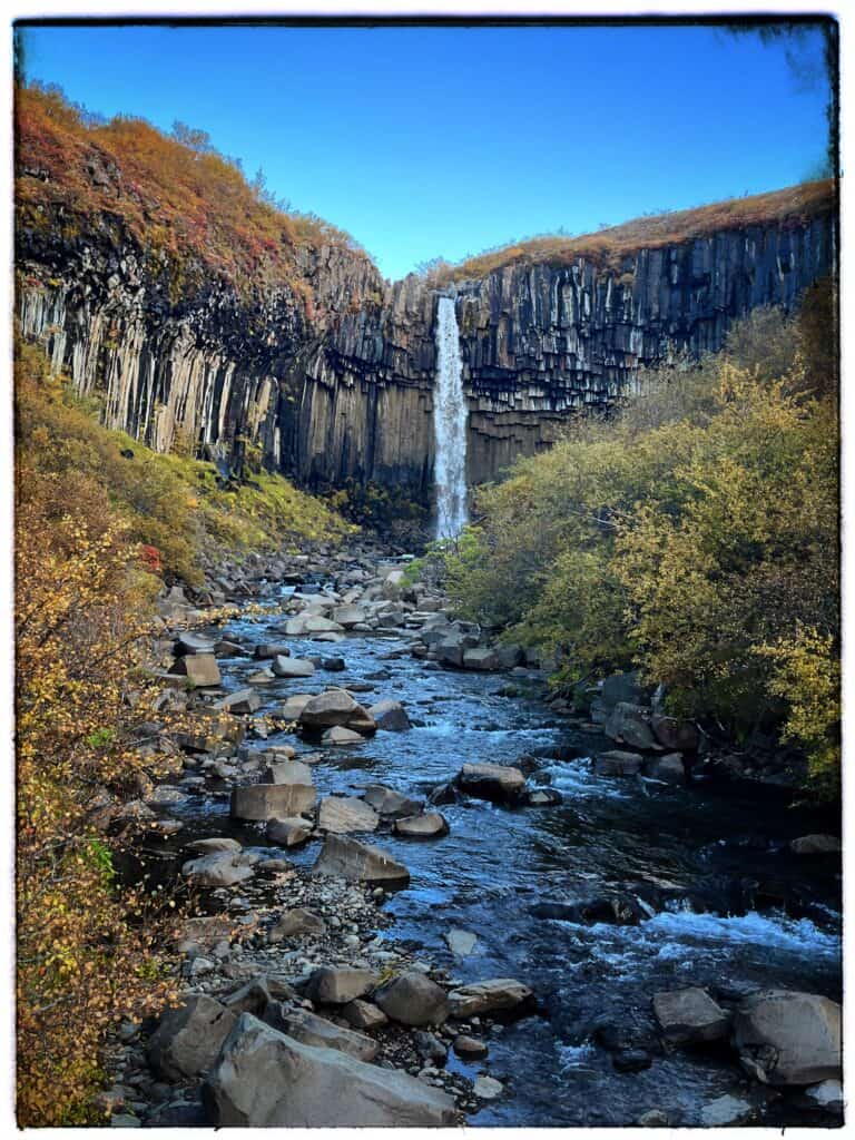 Svodufoss – This is a lovely waterfall. We went at dusk and had the place to ourselves. It was also a short drive to our campsite where we enjoyed a spectacular sunset!