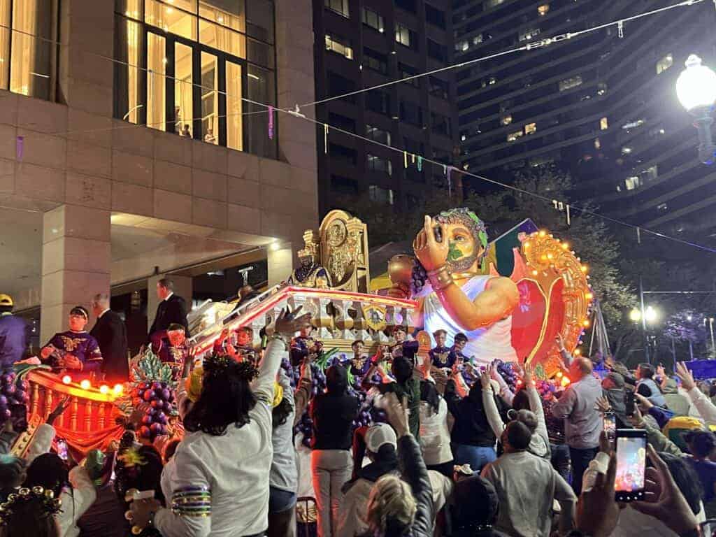 The Krewe of Bacchus was on Sunday night and featured floats themed around great fairs and festivals of Louisiana. Of course, that meant we caught throws featuring alligators, crawfish, and more. Shaq O’Neill was the King of the Krewe this year and threw special basketballs, which sadly we did not see.