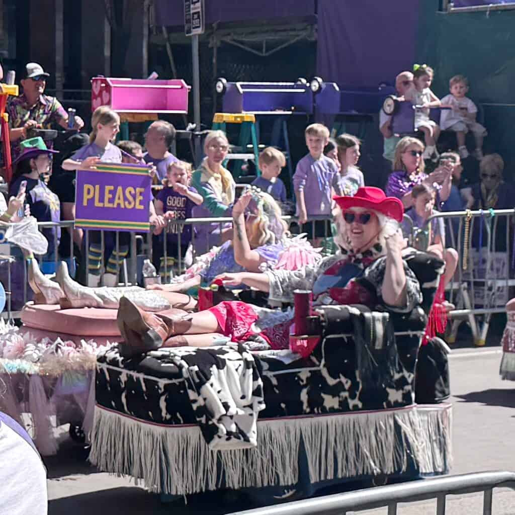 7. Kid friendly: Speaking of dropping throws, take a cute kid with you if you have one. They love to give the kids the fun plush toys and speciality items. I would feel very comfortable taking kids to the day parades which are more family friendly. The night ones might be harder. While the parade is still friendly, it can last several hours past bedtime and the crowds are a bit more rowdy after a day of drinking.